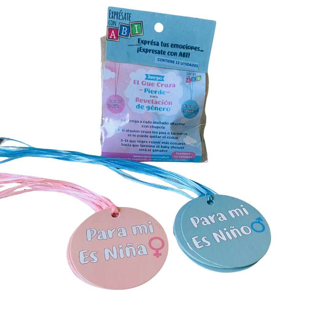 Tus invitados elegirán su bando con nuestros 12 collares ("Para mí es niña" 🩷 o "Para mí es niño" 💙) y luego... ¡que empiece la diversión 🤗!