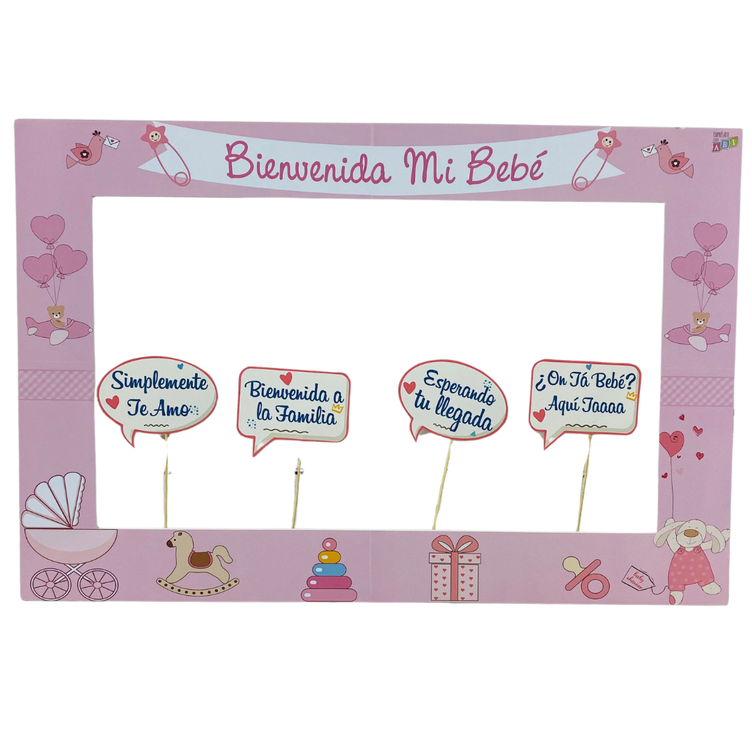 Marco Selfie medidas 90*60 cm con 4 mensajitos divertidos pensados para la animar, alegrar tu fiesta y crear fotos increíbles en tu Baby Shower.